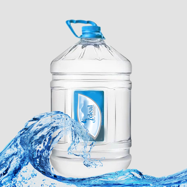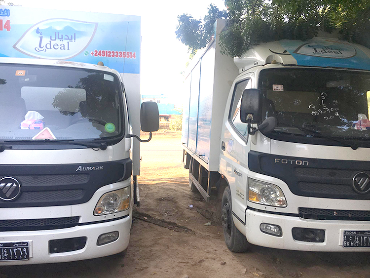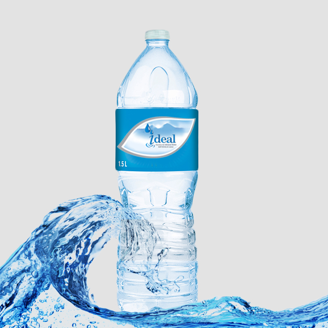 Ideal Factory produces six size pure drinking water treated with ozone. The sizes are: 350ml, 600ml, 1500ml , 5 litre and 10 litre and 18.9 litre And we distribution the product with nice and covered box trucks.